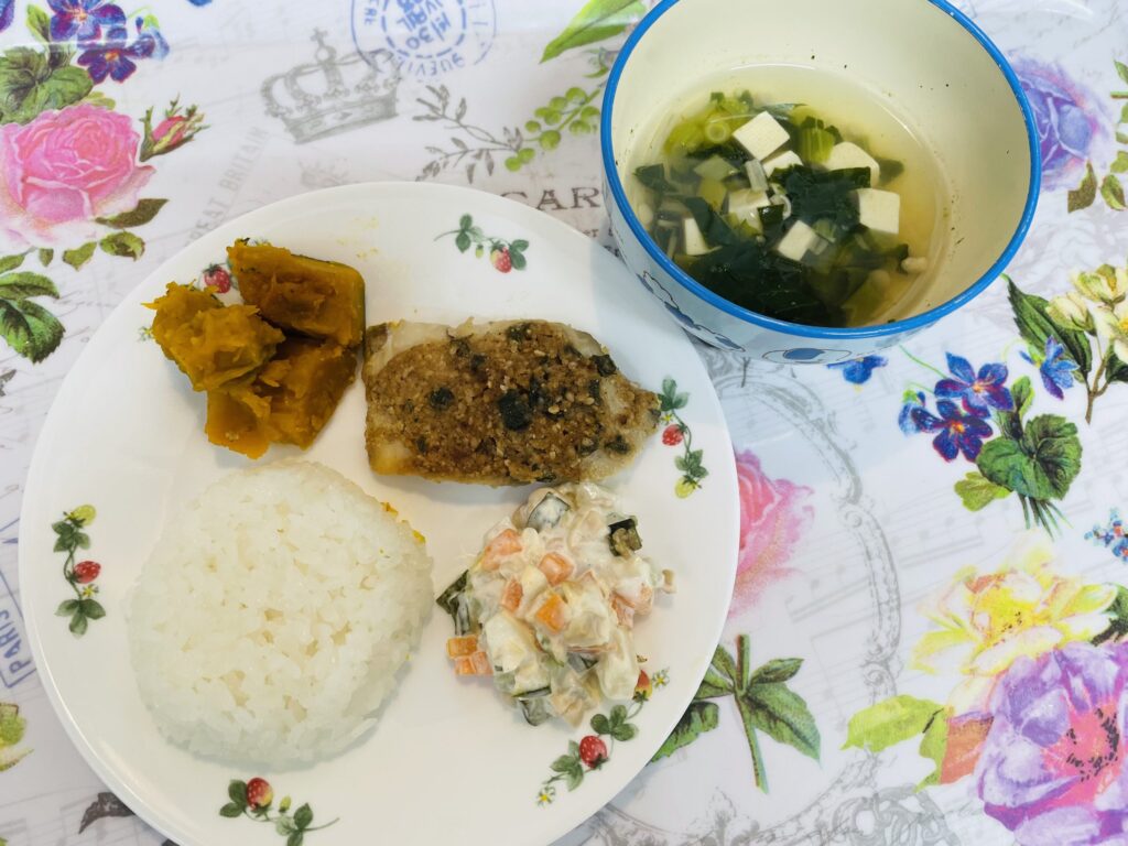 鰆のごま味噌焼き 大豆のコロコロサラダ かぼちゃの甘煮 4月28日
