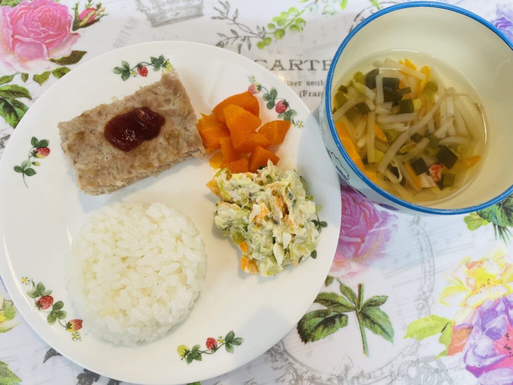 お楽しみ給食 ハンバーグ 人参の甘煮 キャベツのツナマヨサラダ 6月28日
