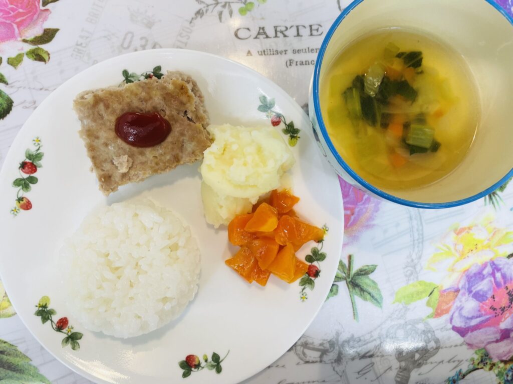 お楽しみ給食 ハンバーグ 人参の甘煮 マッシュポテト 4月25日