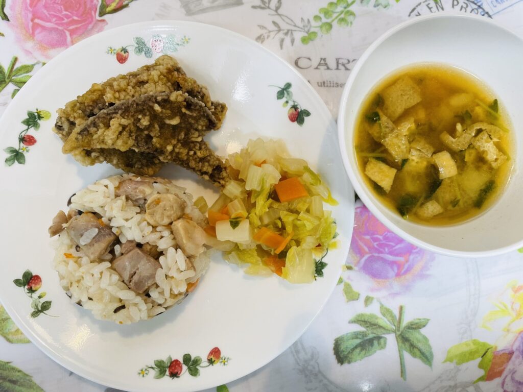 3. きのこご飯 豚レバーの唐揚げ 白菜の煮びたし 11月21日