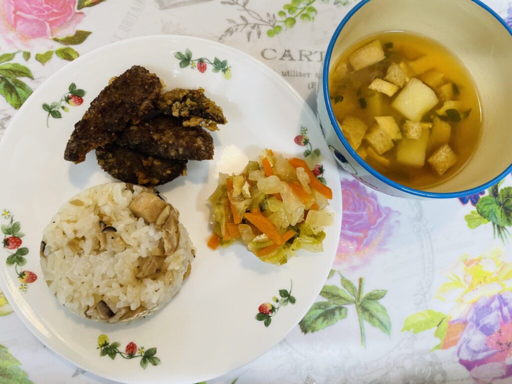 3. きのこご飯 豚レバーの唐揚げ 白菜の煮浸し 11月22日