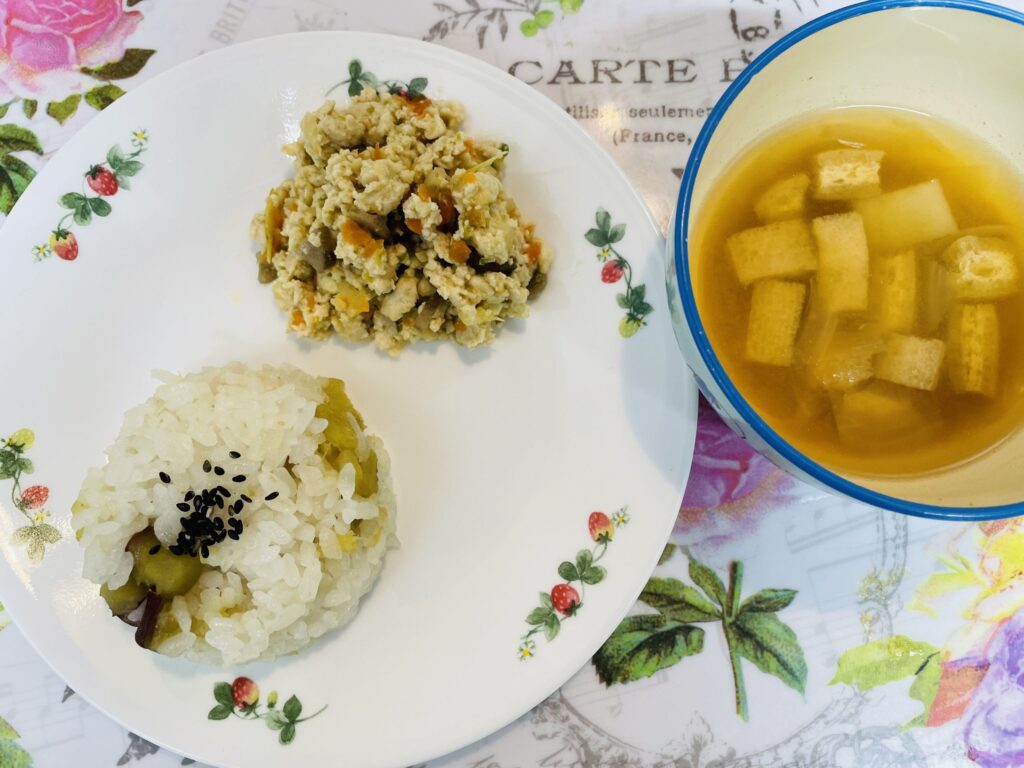 3. さつま芋ごはん 雷豆腐 3月23日