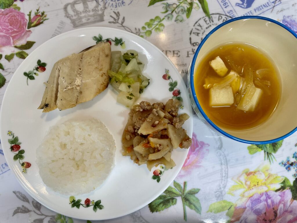もみじご飯 肉豆腐風 いんげんの胡麻味噌和え 1月17日