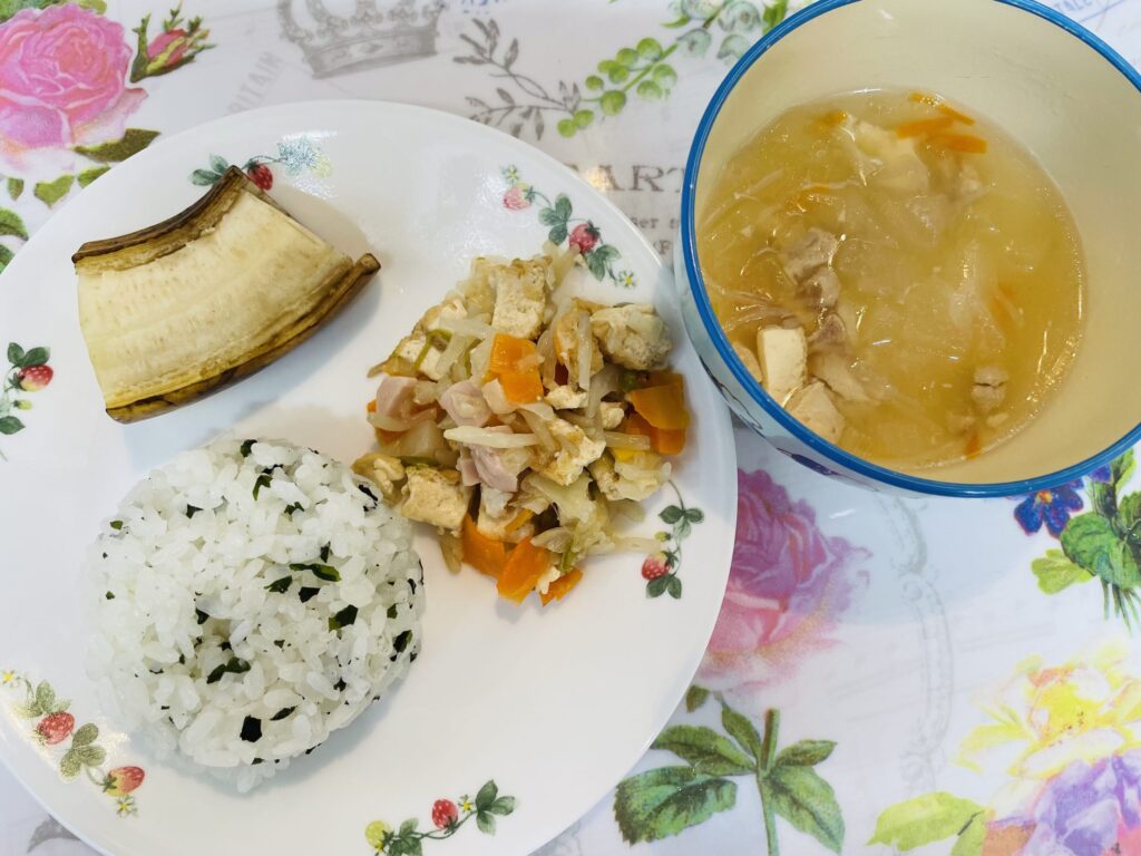 3. しらすわかめご飯 チャンプルー風 鶏肉と冬瓜のスープ 9月26日