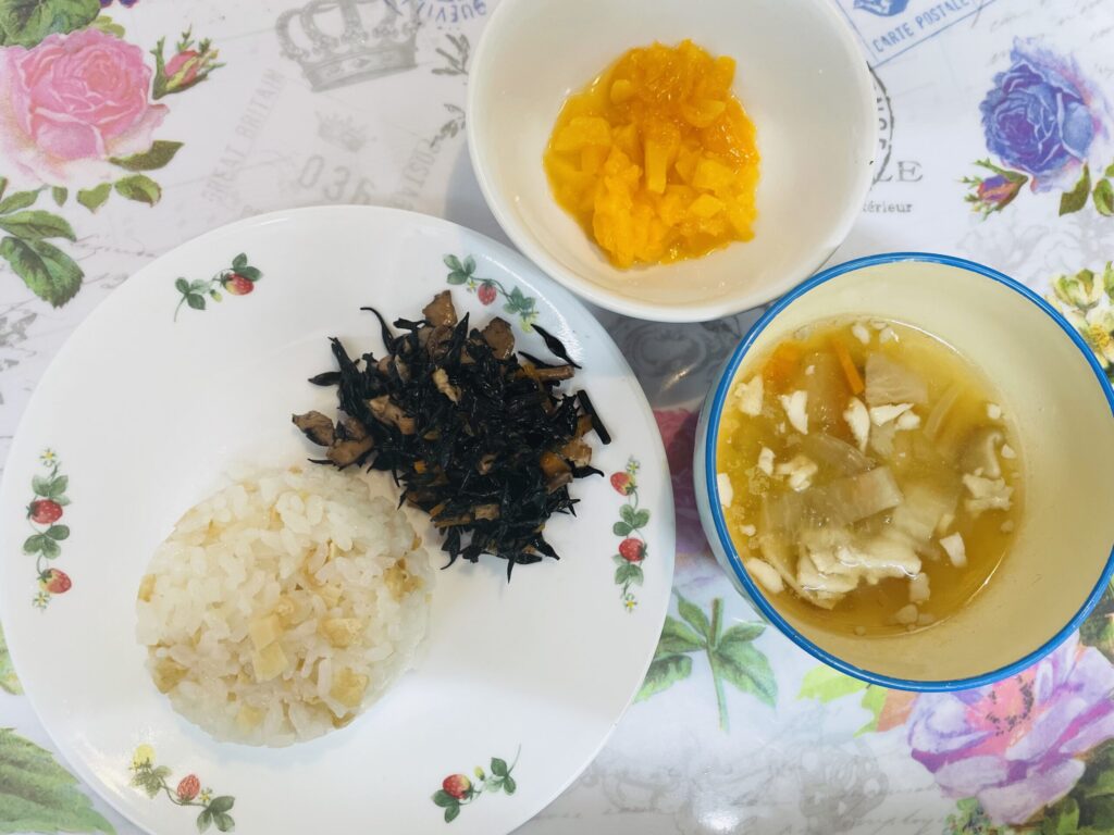 たけのこご飯 ひじきと生揚げの煮物 具沢山汁 4月23日