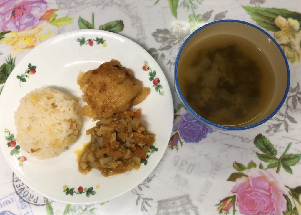 たけのこご飯 魚の揚げ煮 れんこん金平 4月4日