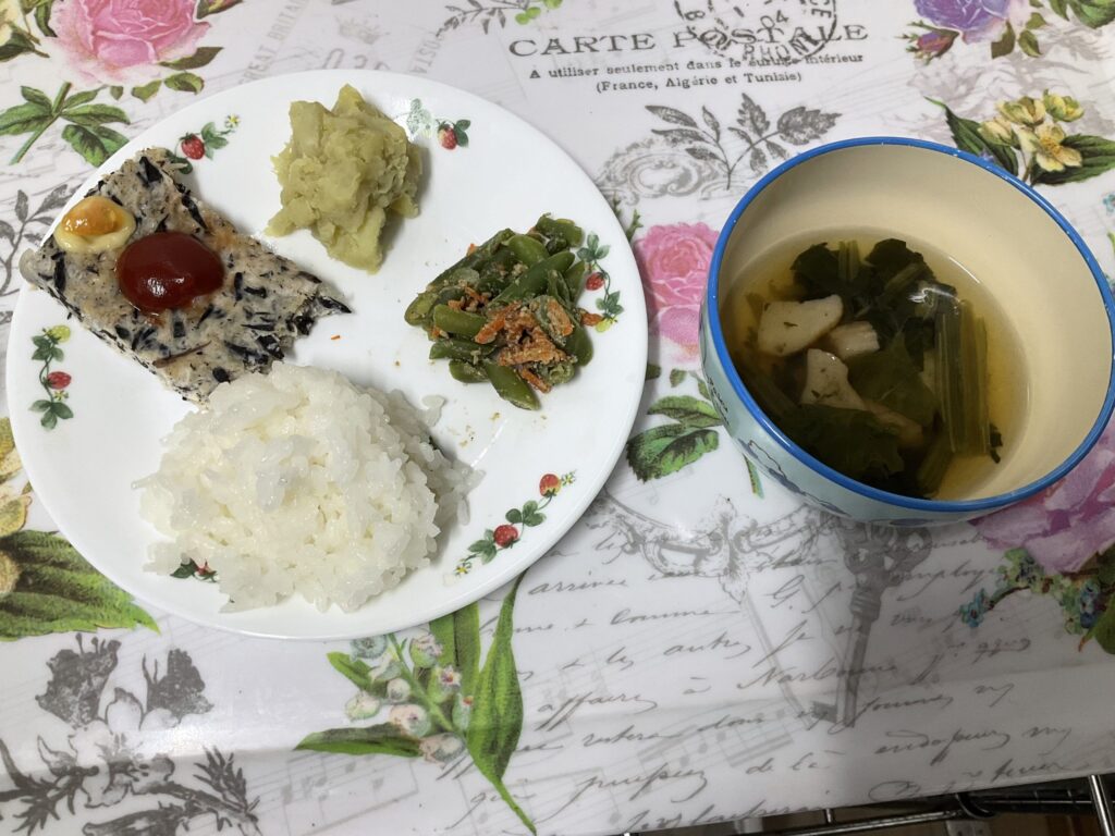 ひじき入りハンバーグ インゲンごま和え きんとん