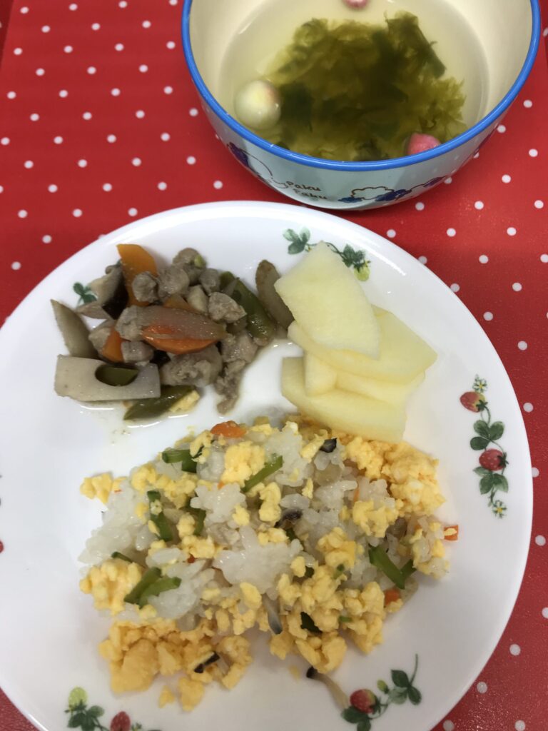 今日は一足早く、ひな祭りメニュー。ちらし寿司と鞠ふとあおさのすまし汁、筑前煮でした。お寿司は、出来上がりをみんなで見てからの盛り付け。ちゃんと一才さんもお利口に待っていてくれました。一才さんたちは、酢飯に抵抗ある子もいましたが、最後は2歳児さんが完食してくれました。🥰