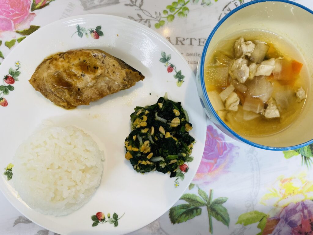 サバの味噌煮 ほうれん草の納豆和え 11月28日