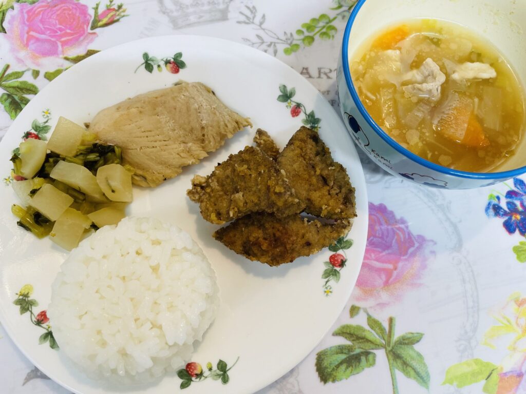 サワラの煮付け 豚レバーの唐揚げ 豚汁 10月14日