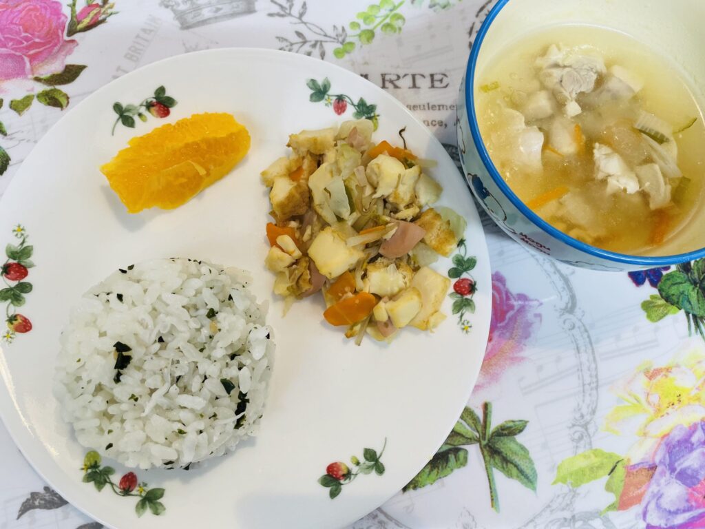 3. シラスわかめご飯 チャンプルー風 冬瓜と鶏肉のスープ 9月30日