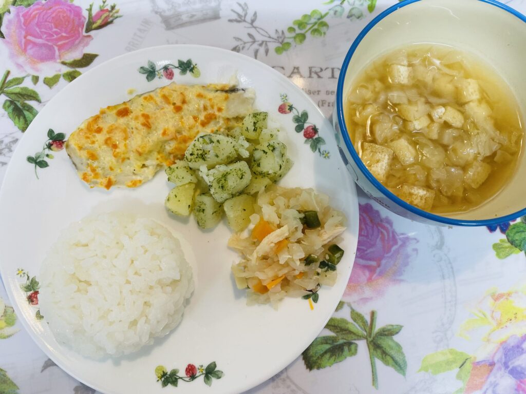 タラのタルタル焼き 粉吹き芋 切り干し大根サラダ 5月22日