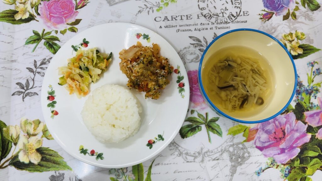 ツナピラフ コールスローサラダ 豆乳スープ 10月31日