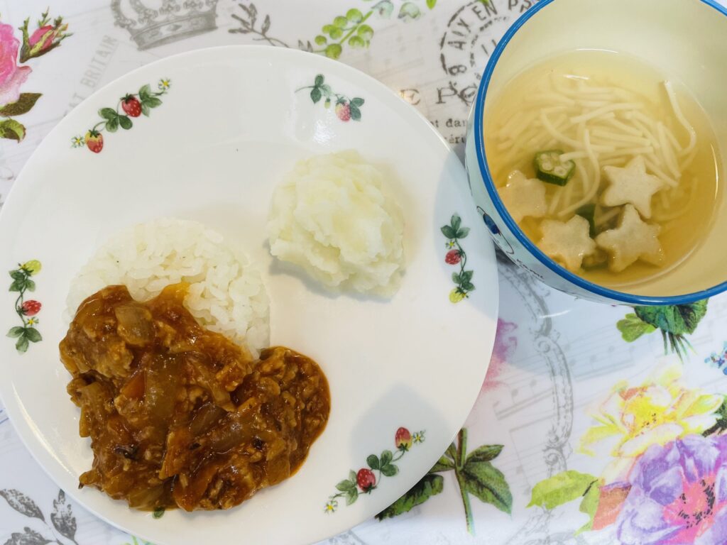 七夕給食 ハヤシライス マッシュポテト スープ 7月5日