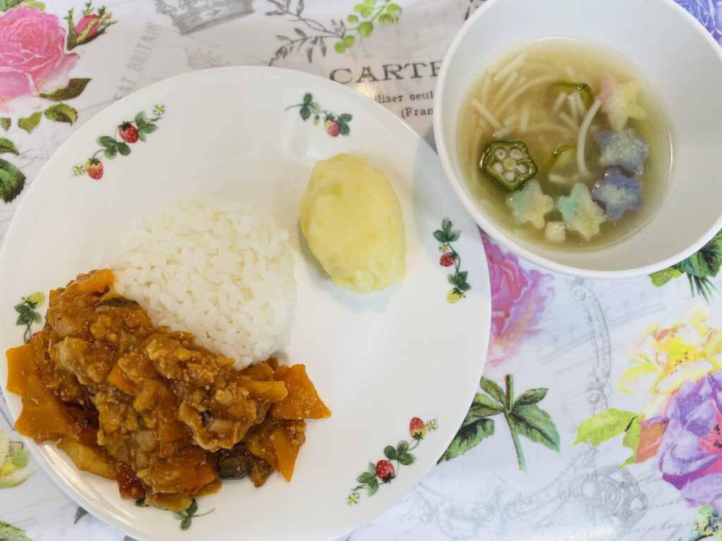 七夕給食 ハヤシライス マッシュポテト 七夕スープ 7月7日