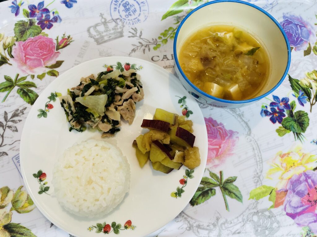 大根と豚肉の煮物 さつま芋の甘煮 4月15日