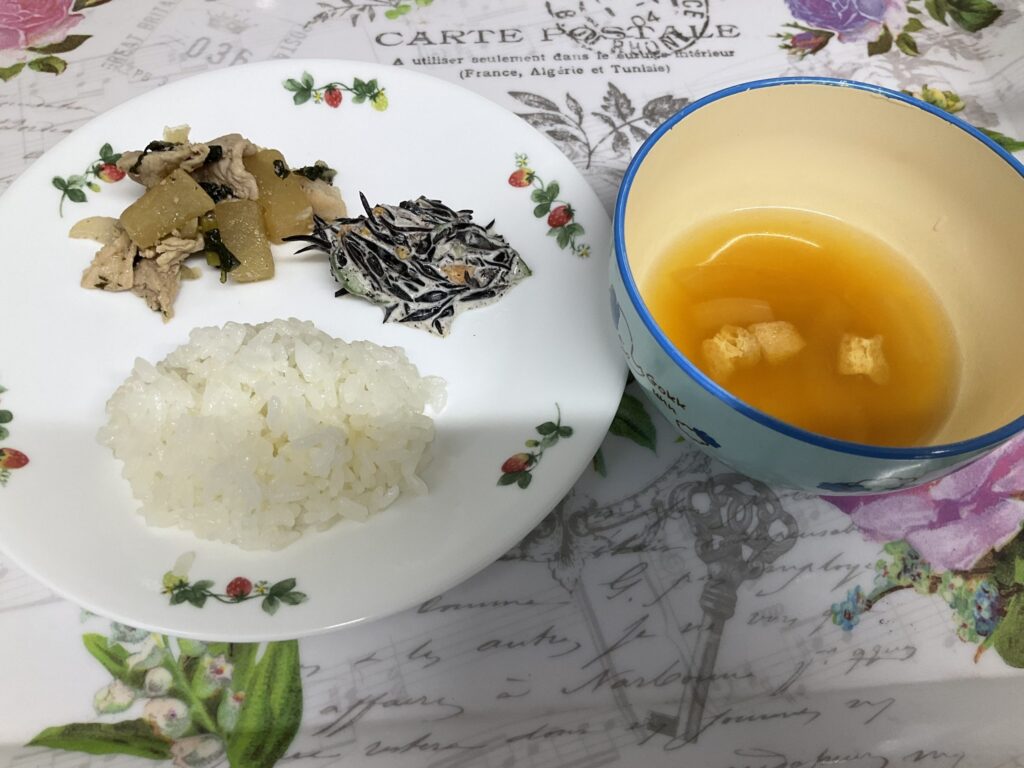 シラスわかめご飯 チャンプルー風 鶏肉と冬瓜のスープ 8月21日
