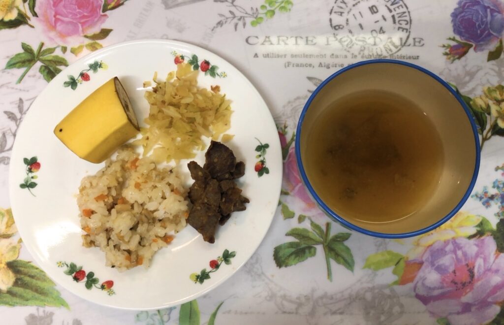 炊き込みごはん 豚レバーの甘辛煮 キャベツのおかか和え 6月27日