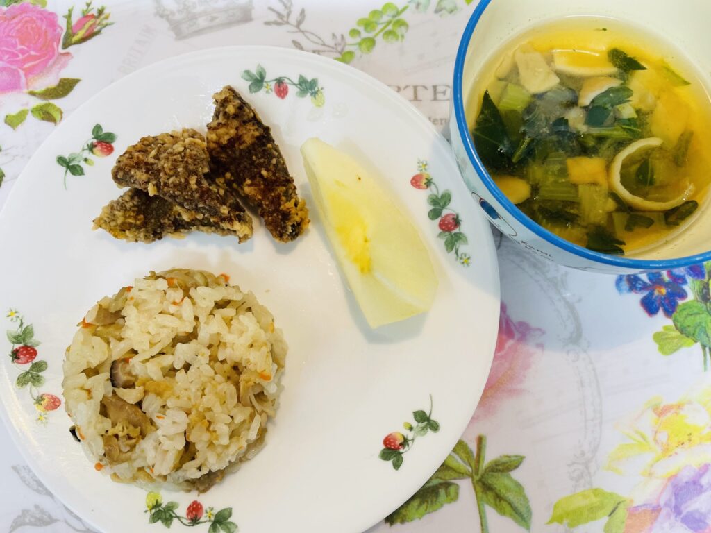 3. 炊き込みご飯 豚レバーの唐揚げ 3月29日
