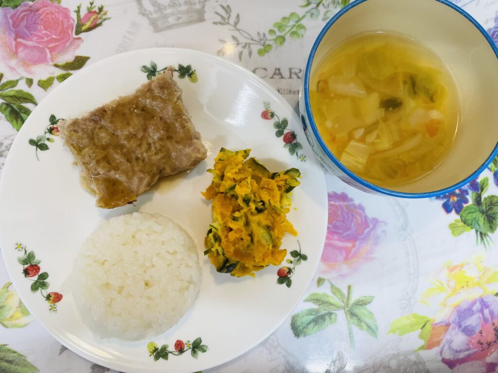 照り焼きハンバーグ かぼちゃサラダ 3月28日