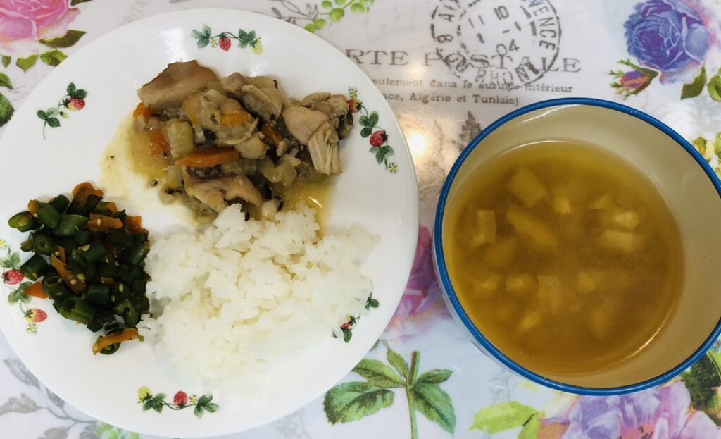 アジのムニエル 春キャベツのおかかあえ 具だくさん汁 5月31日