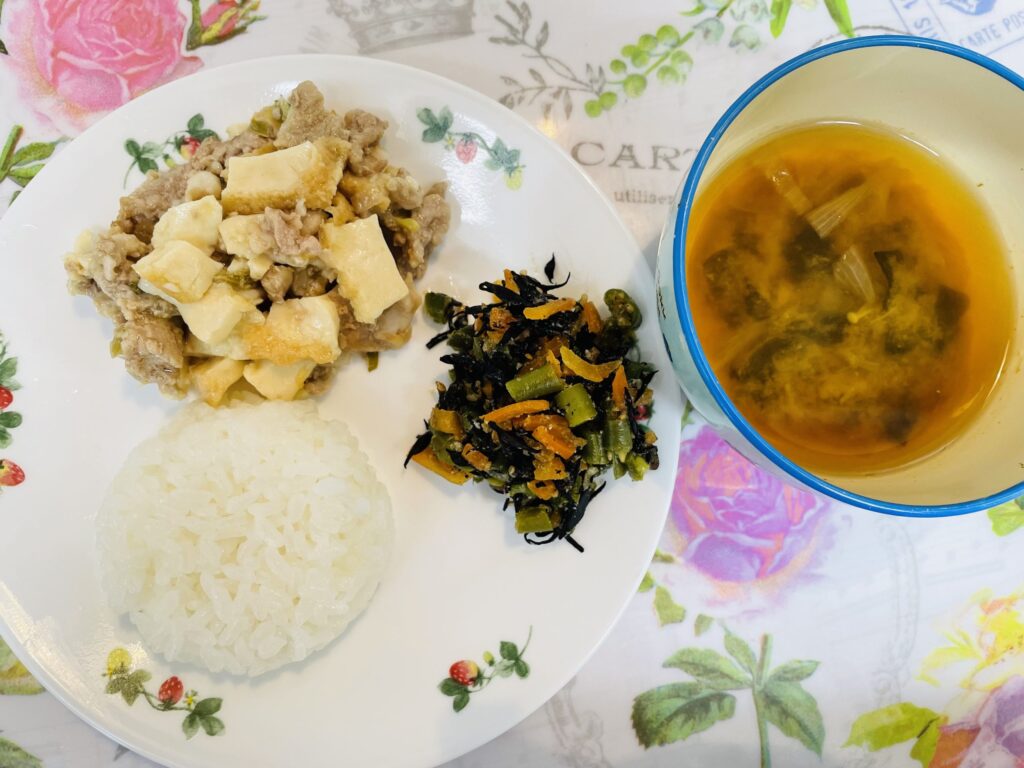 肉豆腐風 いんげんとひじきの胡麻和え 2月19日