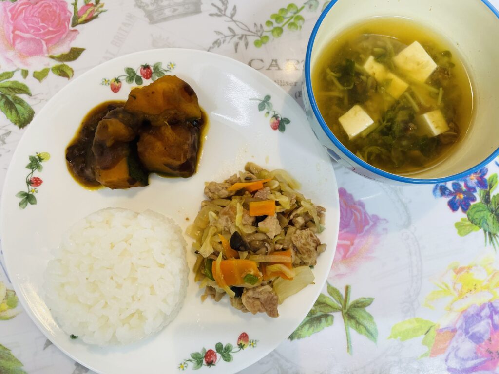 3. 肉野菜炒め かぼちゃのいとこ煮 8月12日