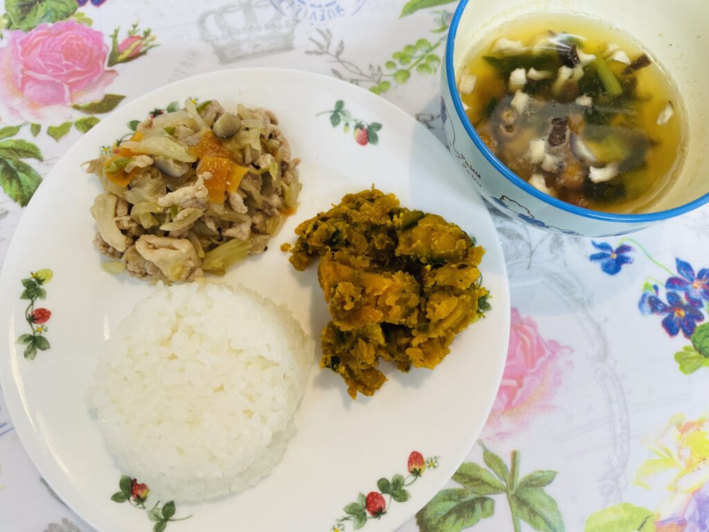 肉野菜炒め かぼちゃのいとこ煮 9月13日