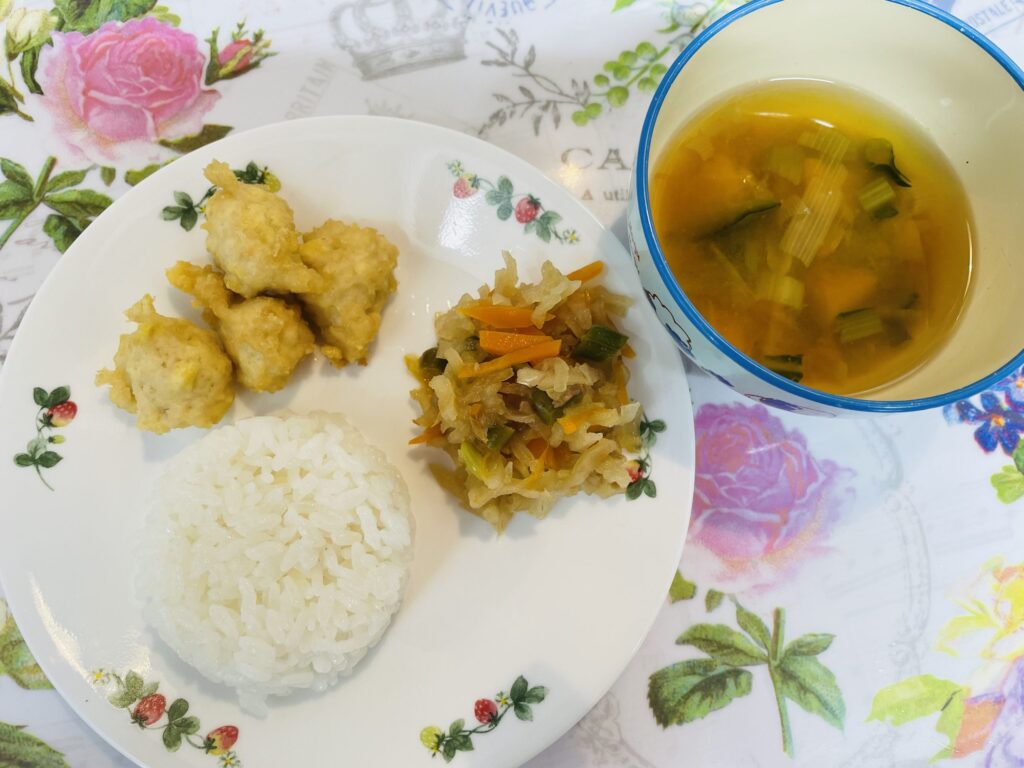 シラスわかめご飯 チャンプルー風 鶏肉と冬瓜のスープ 7月24日
