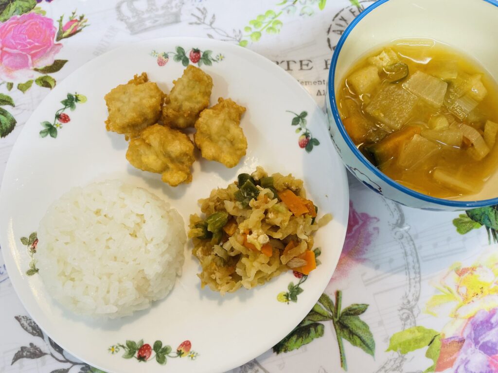 シラスわかめご飯 チャンプルー風 鶏肉と冬瓜のスープ 7月26日