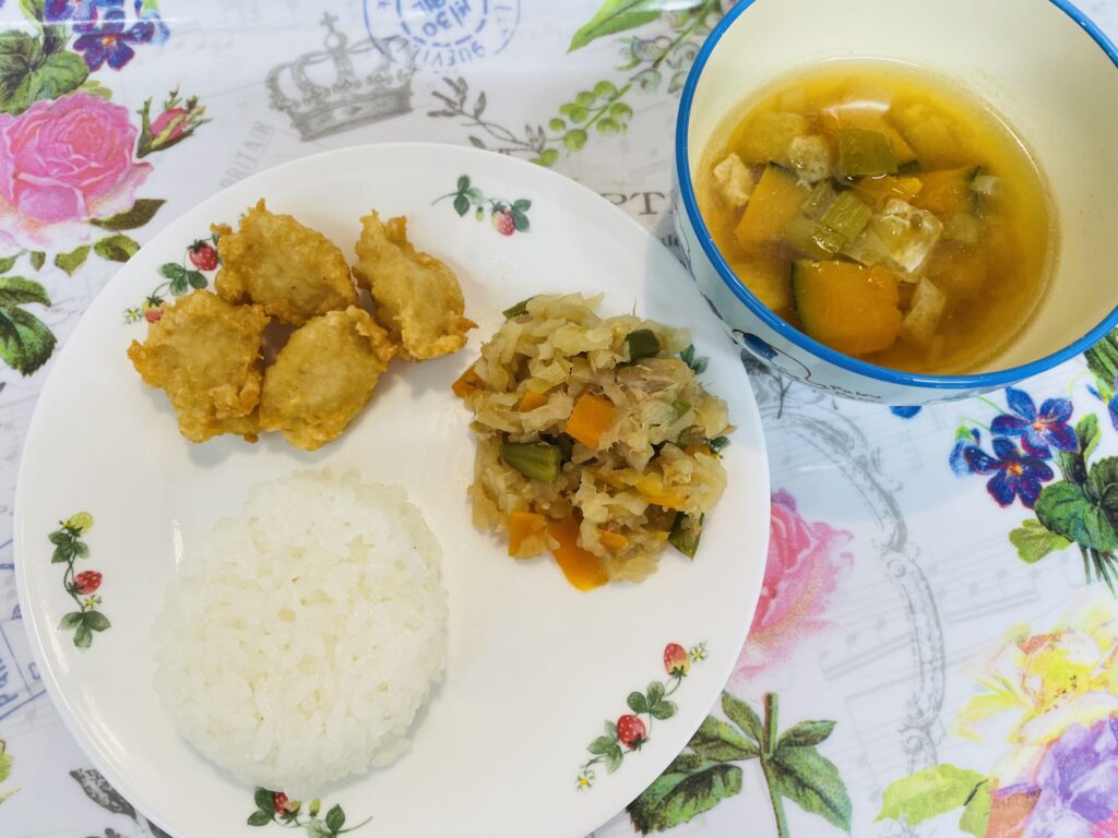 シラスわかめご飯 チャンプルー風 鶏肉と冬瓜のスープ 7月27日