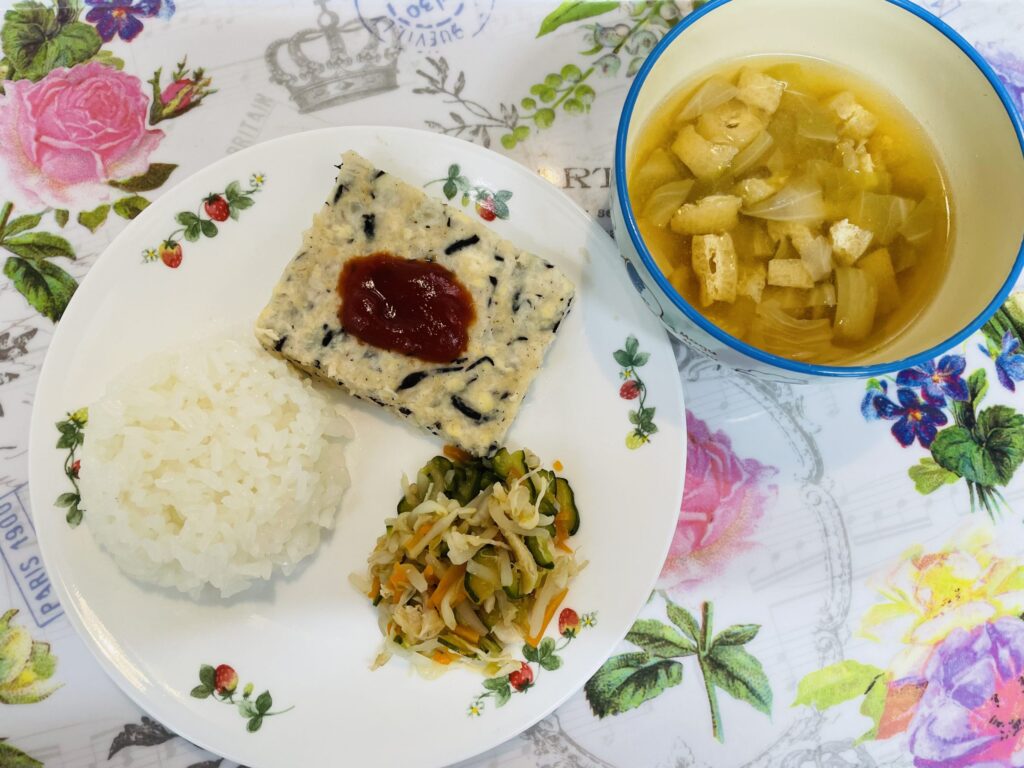 豆腐ハンバーグ もやしとササミの酢の物 6月3日