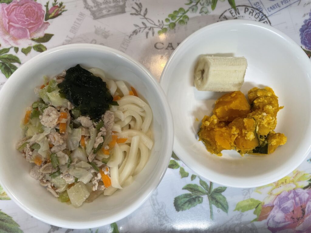 豚しゃぶ冷やしうどん かぼちゃのそぼろ煮 8月22日