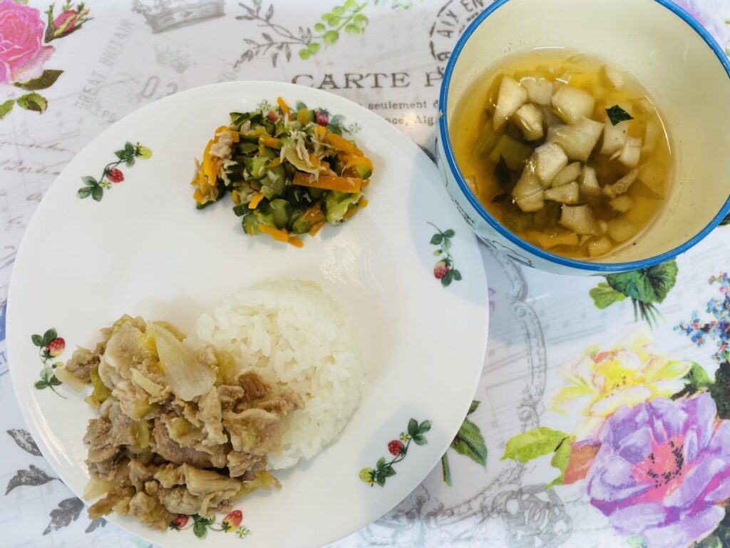 豚丼 きゅうりのツナサラダ 7月17日
