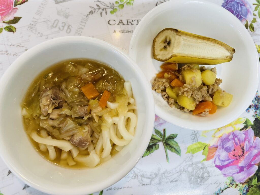 野菜あんかけうどん じゃがいものそぼろ煮 6月16日