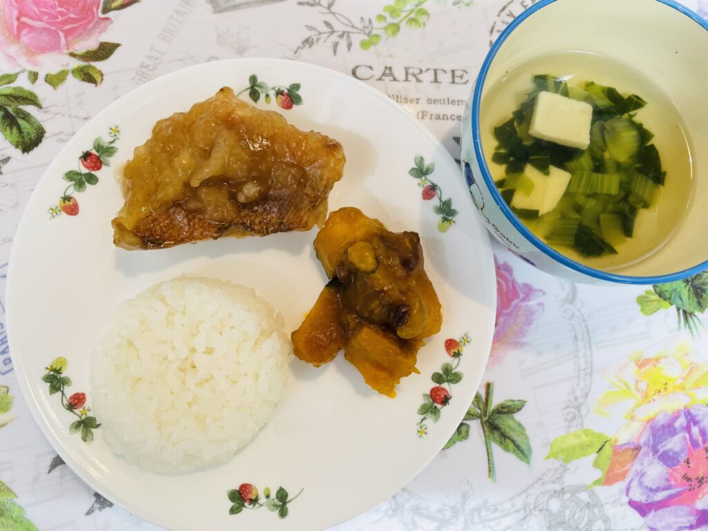 魚の揚げ煮 かぼちゃのいとこ煮 4月2日