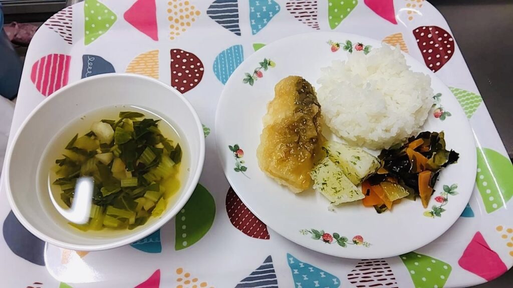 魚の揚げ煮 粉吹き芋 きゅうりの酢の物 11月5日
