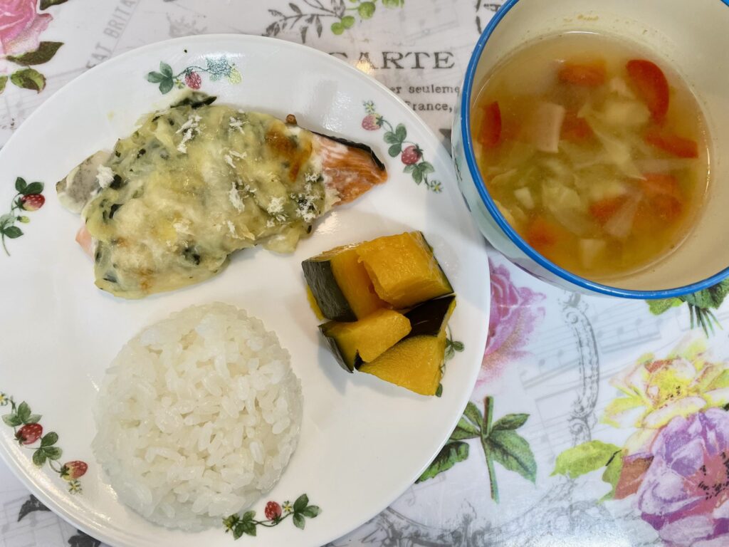 鮭のグラタン風 かぼちゃの甘煮 1月15日