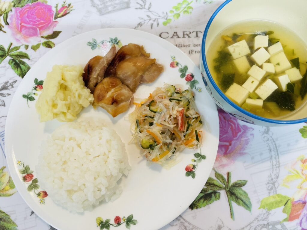 鶏の照り焼き 新じゃがのマッシュポテト 春雨サラダ 5月12日