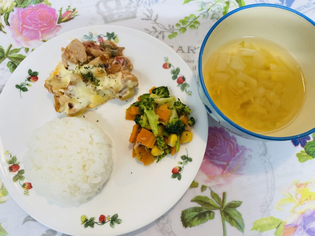 鶏肉のトマトチーズ焼き ブロッコリーソテー 6月7日
