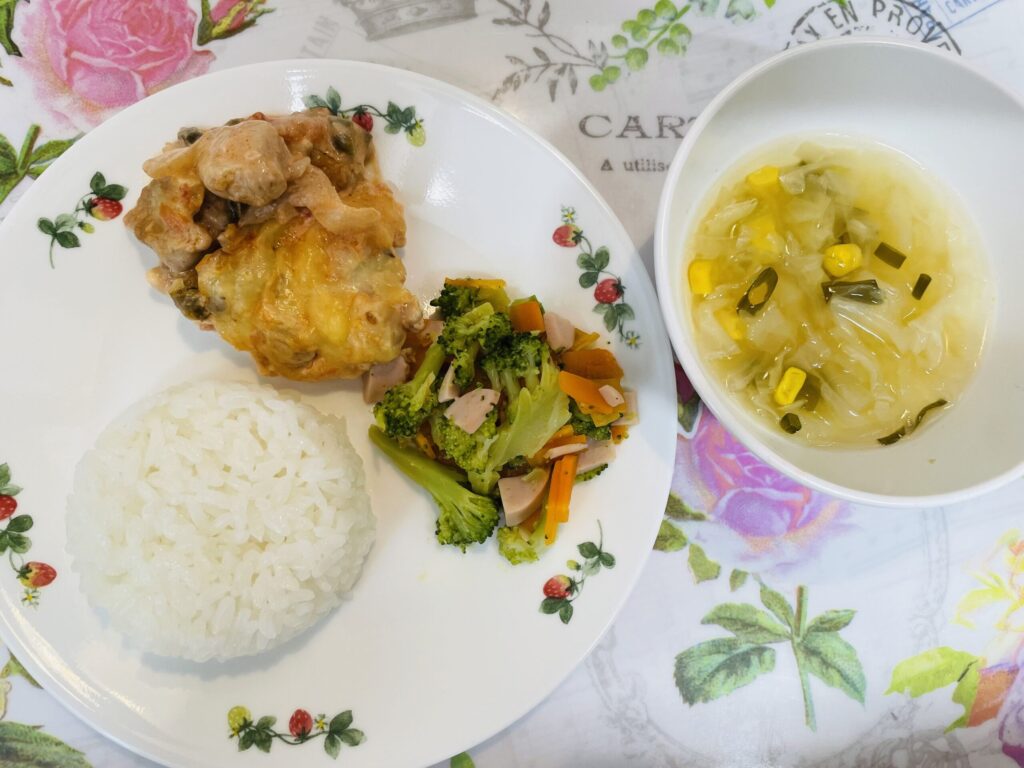 鶏肉のトマトチーズ焼き ブロッコリーソテー 6月4日