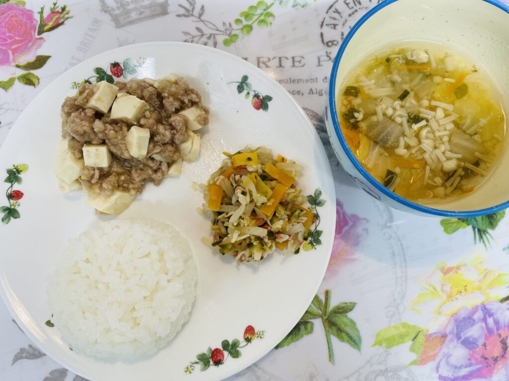 鮭のごま味噌焼き かぼちゃの甘煮 お豆のコロコロサラダ 4月27日