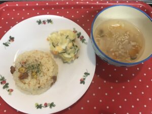 今日はお天気今ひとつでしたが、みんなお散歩に行って腹ぺこで帰って来ました。カボチャのいとこ煮は甘くて人気メニューですが、今日のカボチャはホッコリ煮えて良く食べてくれました。野菜炒めは、肉より野菜の方が人気ありましたね🙄い […]