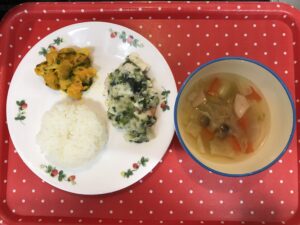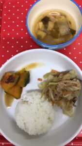 今日も寒い一日でしたが、公園でたっぷり遊んで 出来上がった給食を見つけてニコニコ😊特にカボチャのいとこ煮は、甘いお菓子の様だからか大人気❣️お腹いっぱいおかわりまして、満足そうに空の食器を一生懸命台所まで持って来てくれま […]